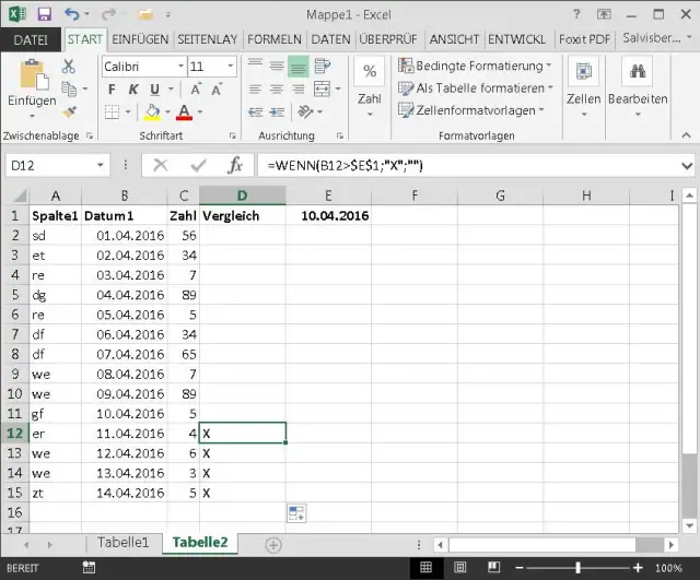 Hier kommen die Dollarzeichen ins Spiel. Fügen Sie in der Formel vor der Spalten- und Zeilenangabe des fixen bzw. statischen Bezuges jeweils ein Dollarzeichen ein. Die Formel in D2 muss also korrekterweise so lauten: =WENN(B2>$E$1;"X";"")