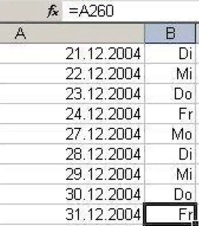 Da Sie ja das Wochenende überspringen möchten, lautet die Formel in der sechsten Zelle anders