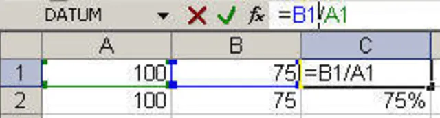 1. entsprechende Zelle markieren, Formelzeile wird angezeigt
