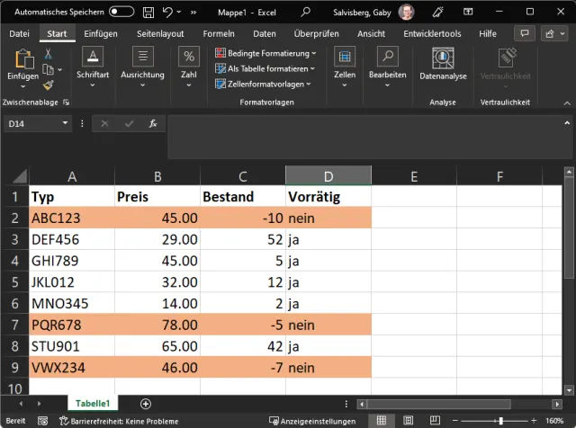 Excel: Ganze Zeile färben, wenn in einer Zelle ein bestimmtes Wort steht