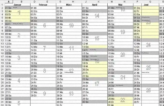 Es gibt für Excel bereits vorgefertigte Programme, die das für Sie erledigen. Eines davon finden Sie auf der Seite "MS Datec" [1]. Sie können sich dort die Datei für die Erstellung des Kalenders herunterladen. Danach brauchen Sie die Datei nur zu entpacken und in Ihrem Excel aufzurufen. Es erscheinen einige Möglichkeiten für die Einstellung. Sobald Sie Ihre Einstellungen festgelegt haben, können Sie den Kalender erstellen. Das Programm ist für private Nutzung kostenlos.