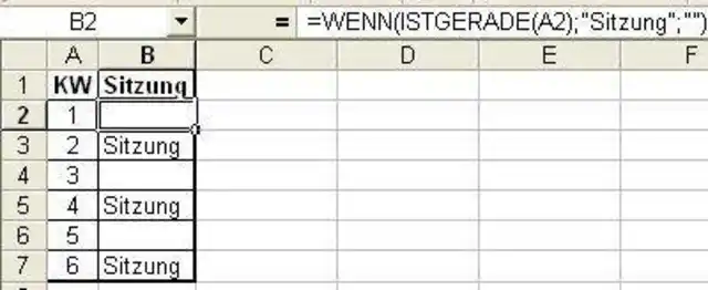 Wie kann ich mit Excel festellen, ob die Kalenderwoche (oder eine Zahl) gerade oder ungerade ist? Bei geraden KW (Zahl) soll ein Wert (Sitzung) ausgegeben werden.