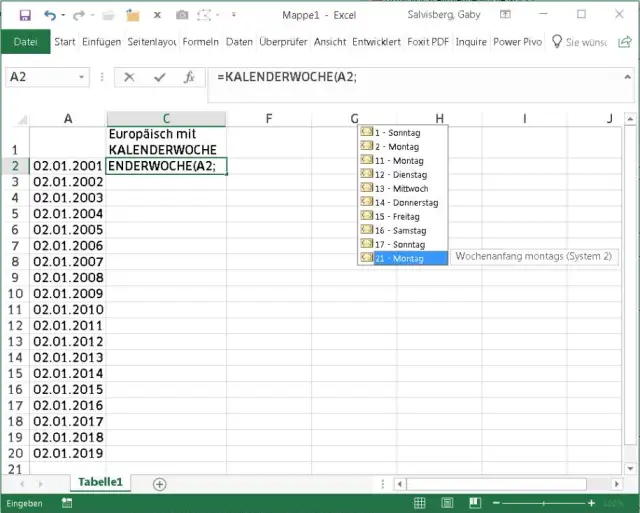 Verwendet man die Funktion KALENDERWOCHE ohne weitere Parameter, greift Excel zum USA-Standard. Seit Excel 2007 gibt es aber einen Schalter, der die Formel mit dem europäischen System verwendet. Tippen Sie =KALENDERWOCHE(A2; ein, erscheint nach Eingabe des Strichpunkts ein Ausklappmenü, in welchem Sie das System 2 mit Wochenbeginn Montag auswählen – und dies ist der Schalter 21. Dies fügt den Schalter 21 auch zur Formel hinzu, sodass diese so lautet: =KALENDERWOCHE(A2;21). Hiermit klappt das schon bestens.