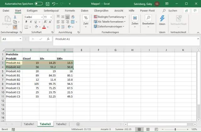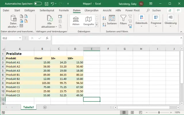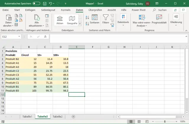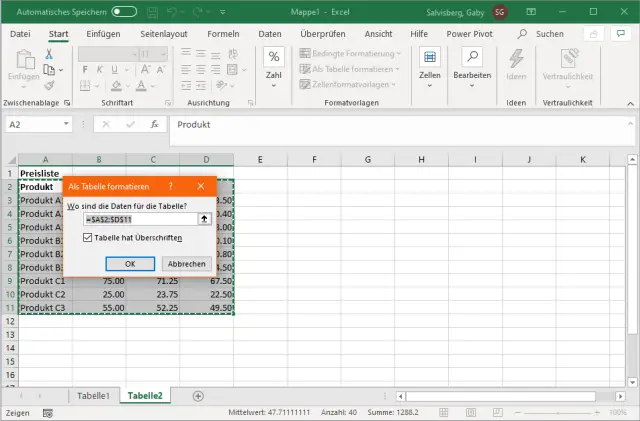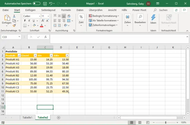 Eine über die Excel-Vorlagen formatierte Tabelle