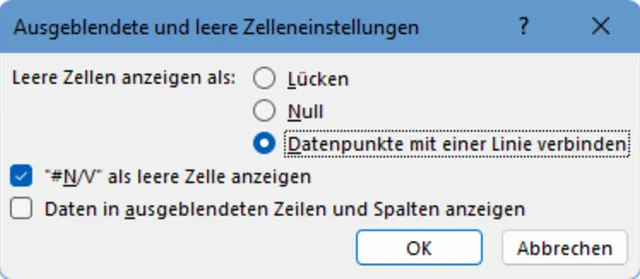 Klicken Sie in beiden Fenstern auf OK, erscheint die Linie im Diagramm ohne Lücken.