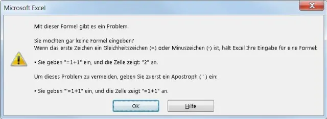 Excel meldet «Mit dieser Formel gibt es ein Problem»
