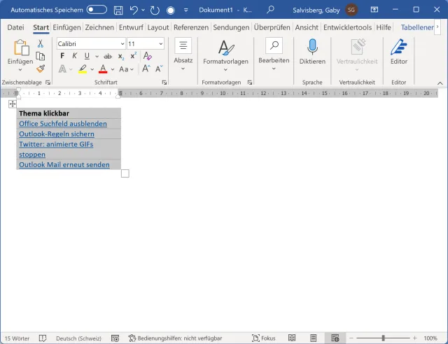 Der Umweg übers HTML-Format bietet ebenfalls einen Weg, die mit «Hyperlink» erstellen Links beizubehalten