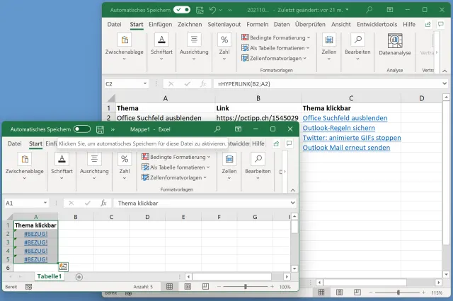 Excel: Spalte mit per Hyperlink-Funktion verlinkten Wörtern kopieren