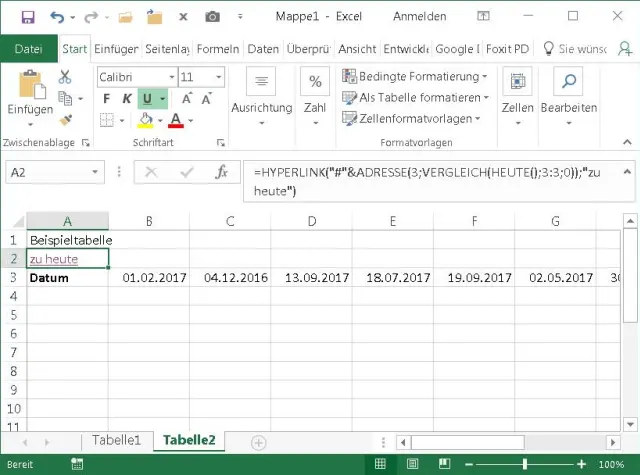 Angenommen, die Zeile mit den Datumsangaben sei die Zeile 3. Setzen Sie den Cursor in jene Zelle, in der Sie den Hyperlink brauchen, zum Beispiel in A2. Nun führt folgende Formel zum Ziel: