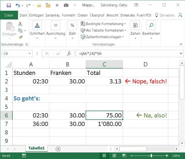 Excel: Stunden mit Franken multiplizieren