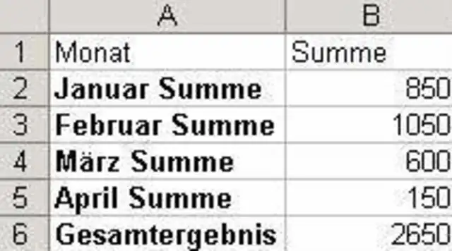Sie haben in einer Liste Teilergebnisse erstellt und lassen diese nun als Zusammenfassung anzeigen