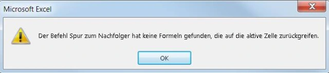Lösung: Nichts leichter als das! Klicken Sie auf die fragliche Zelle. Öffnen Sie den Reiter Formeln und klicken Sie im Bereich Formelüberwachung auf Spur zum Nachfolger. Wenn die Zelle nirgends sonst verwendet wird, erscheint eine entsprechende Meldung.