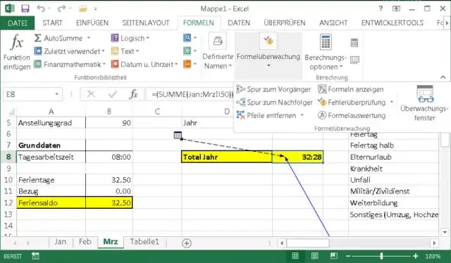 Aus welchen Zellen stammen die Werte in dieser Zelle?