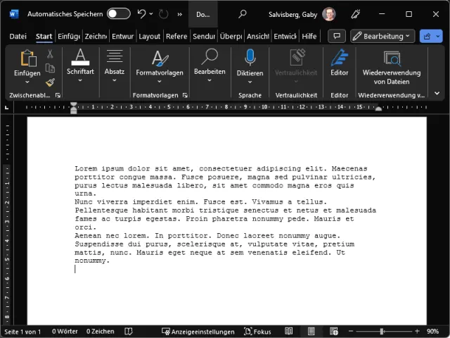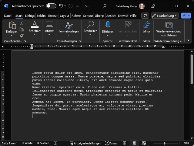 Word kann das Dokument am Bildschirm weiterhin mit schwarzer Schrift auf weissem Hintergrund anzeigen …