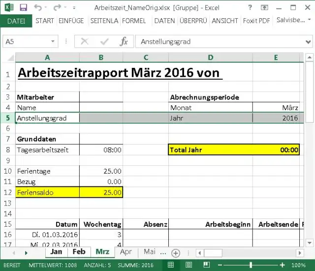 Welche markiert sind, sehen Sie an der Farbe der Lasche. Die markierten Blätter (im Screenshot z.B. Jan bis März) sind hier weiss, die anderen hellgrau.
