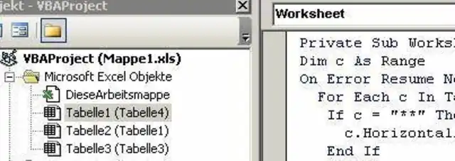 Sie finden das Makro im Anschluss an diesen Text. Es überprüft eine Zelle, sobald sie etwas daran ändern und zentriert den Inhalt, wenn die Zeichenfolge "**" ist.