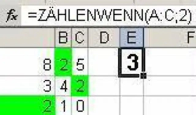 In folgender Tabelle wurde die bedingte Formatierung so eingestellt, dass der Zellhintergrund grün wird, wenn die Zelle den Wert 2 enthält. Mit ZÄHLENWENN werden nun alle Zellen gezählt, die den Wert 2 enthalten = alle Zellen, die deren Zellhintergrund durch die bedingte Formatierung grün wurde.