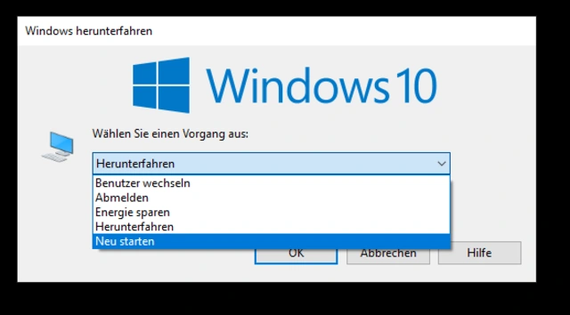 Bild 2: Per Klick auf den Desktop, gefolgt von Alt+F4, erscheint dieses Fenster für den Neustart