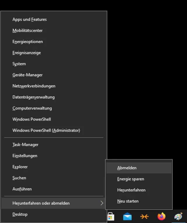 Bild 3: Das Windows-X-Menü bietet Ihnen über Tastenkürzel einen Schnellzugang zum Neustart