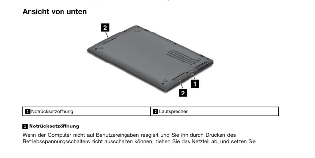 Bild 10: Lenovo-Geräte verfügen über eine Rücksetzöffnung, die im Benutzerhandbuch ganz genau dokumentiert ist