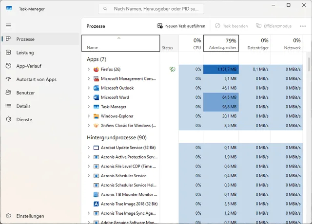 Bild 4: Im Task-Manager finden Sie Prozesse, die möglicherweise zu Fehlern beitragen