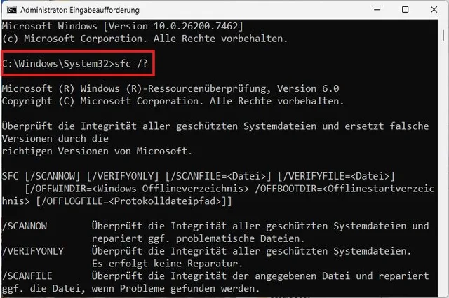 Bild 9: Der Befehl namens sfc überprüft die Integrität von Systemdateien und ersetzt fehlerhafte Versionen