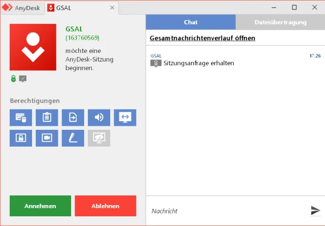 Der User muss noch auf Annehmen klicken, dann ist die Direktverbindung aufgebaut
