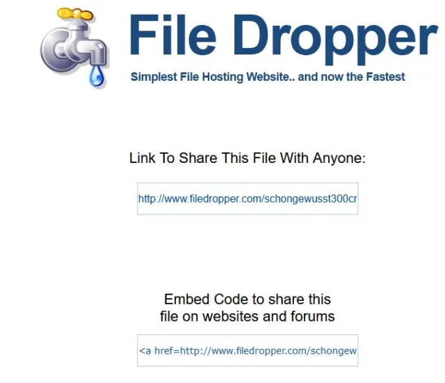 Quelle: Screenshot/PCtipp.chFile Dropper funktioniert um einiges simpler als Dropbox: Sie laden Dateien hoch und verschicken einen Link. Fertig. Der Dienst ist kostenlos, man muss sich nicht registrieren. Maximal können Sie bis zu 5 GB verschicken. Die kostenlose Version bietet aber keine weiteren Einstellungsmöglichkeiten.