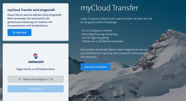 Ab Oktober 22 ist fertig mit myCloud Transfer der Swisscom
