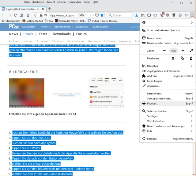Lösung: Hier sind Firefox-Nutzer einmal im Vorteil, denn der hat eine simple Auswahlmöglichkeit. Öffnen Sie den Artikel oder Tipp, der Sie interessiert. Wenn es sich um einen mehrseitigen Artikel handelt, verwenden Sie zunächst Auf einer Seite lesen. Das ist wichtig; sonst klappt es nicht.