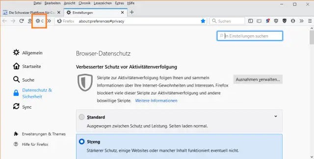 Unscheinbar, aber nützlich, wenn man es häufig braucht: eine direkte Verknüpfung z.B. zu den Cookie-Einstellungen oben links in der Symbolleiste (Zahnrad-Icon mit «C»)