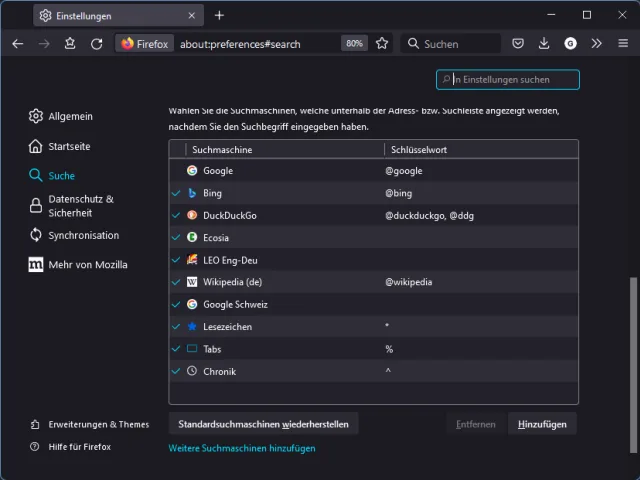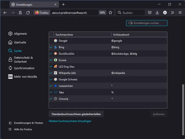 Letztes Jahr habe ich im Artikel «Fast jede Webseiten-Suche in Chrome, Edge und Firefox» gezeigt, wie Sie in diesen drei Browsern individuelle Suchwerkzeuge einfügen. Das funktioniert immer noch.