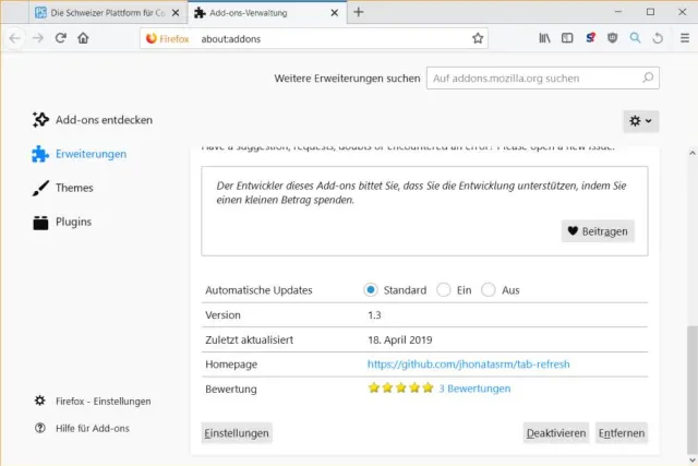 In Firefox kann diese Aufgabe das Add-on «Tab Refresh» übernehmen. Öffnen Sie Firefox-Menü/Add-ons, tippen Sie im Suchfeld Tab Refresh ein und installieren Sie die Erweiterung. Alternativ finden Sie die Erweiterung auch über diesen Link.