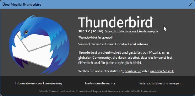 Diesen Thunderbird habe ich zu Demozwecken absichtlich in der 32-Bit-Version installiert