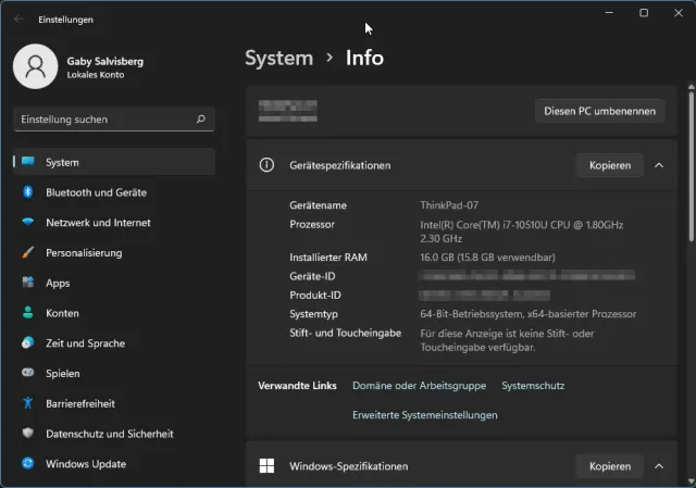- Wenn Ihr PC mindestens 4 GB RAM hat. Diese Info finden Sie an der gleichen Stelle, unter «Arbeitsspeicher» bzw. «Installierter RAM».