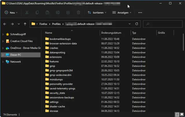 In einem Ordner wie diesem verwaltet Firefox Ihre Einstellungen, Lesezeichen, gespeicherten Passwörter usw.