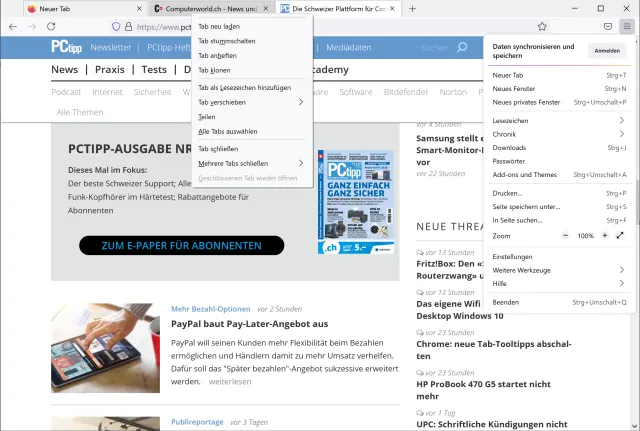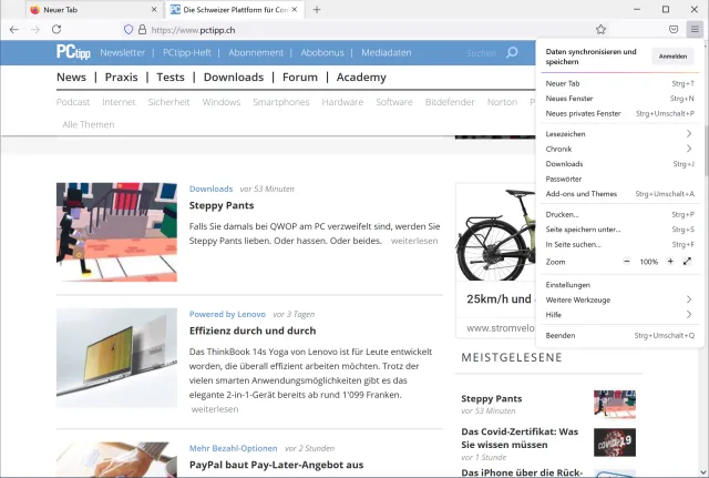 Kürzlich wurde die Version 89 von Mozilla Firefox über ein Update an die Nutzerinnen und Nutzer verteilt (PCtipp berichtete). Die Tabs haben ein neues, etwas gewöhnungsbedürftiges Aussehen bekommen, das Kontextmenü der Tabs wurde umgekrempelt, das Firefox-Menü (Hamburger-Menü) enthält etwas viel Weissraum und der Kompakt-Modus der Tabs ist ebenfalls weggefallen.