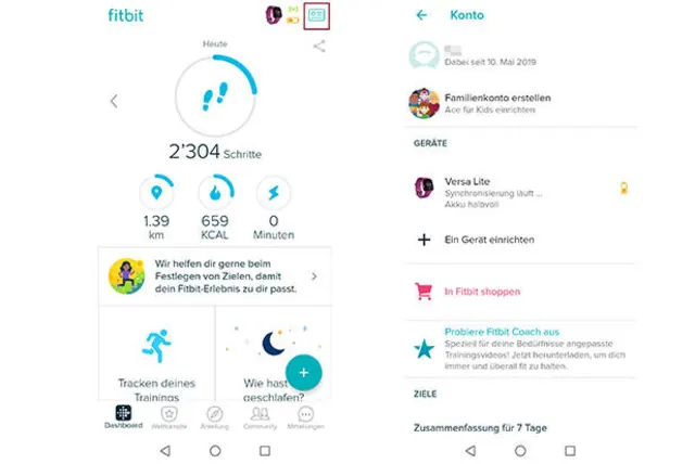 - Öffnen Sie die Fitbit-App (Google Play Store; haben Sie die aktuellste Version?)
