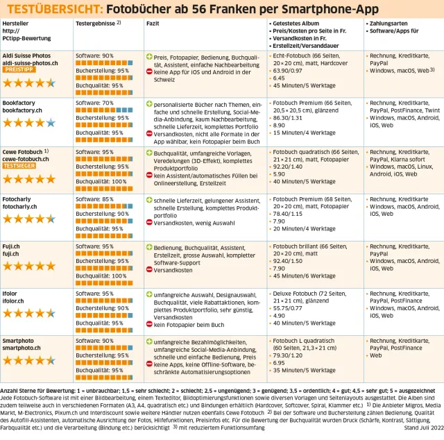 Testübersicht: Fotobücher ab 56 Franken per Smartphone-App (Stand: Juli 2022)