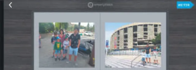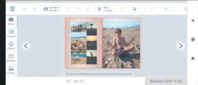 Quelle: PCtipp.chBereits ab Start kann der Anwender bei der Cewe-Fotobuch-App aus dem Vollen schöpfen: Angeboten werden unter anderem das Erstellen von Fotos, Wandkalendern, Postkarten, Handy-Hüllen und Fotobüchern. Nach einem ersten Fingertipp auf Fotobücher lässt der Hersteller dem Kunden zuerst die Wahl des Formats, danach werden Einband und Papierart festgelegt. Wer hier Top-Qualität will, kann sich für Fotopapier matt oder glänzend entscheiden. Danach gehts ebenso intuitiv weiter: Nacheinander werden die Fotoquelle, die Fotos (entweder einzeln oder der gesamte Ordner) sowie der Buchtitel und das Design der Innenseiten festgelegt. Dann ist das Grundgerüst des Fotoalbums bereits abgeschlossen. Bei einem erneuten Fingertipp auf den Weiter-Button füllt der Assistent das leere Fotobuch mit den ausgewählten Fotos automatisch auf und arrangiert diese vorbildlich: Thematisch ähnliche Bilder werden zusammengefasst und in unterschiedlichen Grössen abwechslungsreich in das Fotobuch integriert. Im Test vergingen lediglich 2 Minuten, um unsere 229 Fotos in die digitale Fotobuchschablone automatisch und passgenau einpflegen zu lassen. Hier zieht der Anbieter der Konkurrenz davon. Wer dennoch selbst Hand anlegen will, kann dies mithilfe des Editors erledigen: Er lässt sich mit ein bis zwei Fingern komplett bedienen. Wer noch auf der einen oder anderen Seite Text einbauen will, kann dies mit dem Editor schnell und dank einer Rechtschreibprüfung auch sicher erledigen. Unser getestetes Fotobuch wurde innert 4 Minuten komplett übertragen und kostete mit Versand Fr. 63.50. Nach bereits vier Werktagen lag es im Briefkasten. Qualitätstechnisch gab es bei unserem Aufklapp- und Falltest nichts zu beanstanden: Der Falz ist sauber verarbeitet, die Innenseiten hochwertig, der Fotodruck präzise und sauber, sodass auch Übergänge und kleine Details im Bild nicht verloren gehen.