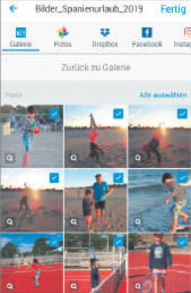Fotos sollten sich im optimalen Fall aus den unterschiedlichsten Quellen in die Fotobuch-App laden lassen. Typische Quellen sind der Foto-Ordner, aber auch Netzwerkspeicher, Cloud-Speicher und Social-Media-Plattformen wie Facebook, Flickr oder Instagram. Hier punkten im Test Cewe Fotobuch, Pixum, Fotocharly und Ifolor besonders.