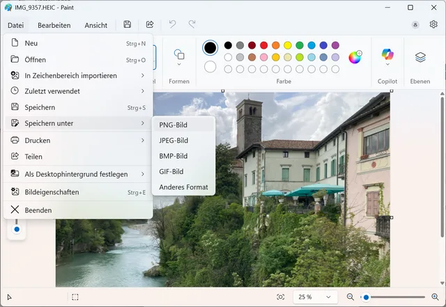 Bild 1: Paint öffnet HEIC-Bilder und konvertiert sie in andere Formate