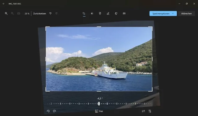 Bild 4: Den Horizont begradigen und Aufnahmen zuschneiden können Sie mit der Fotos/Fotoanzeige-App ebenfalls