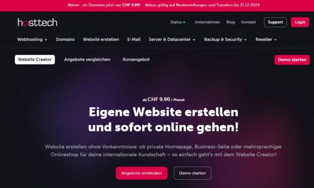 Hochaktuell, technisch versiert und mit Schritt-für-Schritt-Anleitungen vollgepackt: Das bietet der Schweizer Provider Hosttech. Auch beim Support ist Wissen Trumpf. Hilfestellungen sind weitreichend, die Preise günstig. Dazu bietet der Hoster Leckerlis in Form von Gratis-Homepagekursen an. Der Website-Creator-Baukasten ist einfach zu bedienen. Eigene Webseiten sind damit schnurstracks erstellt.