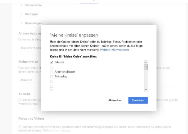 Deaktivieren Sie die Kreise in der «Meine Kreise»-Einstellung