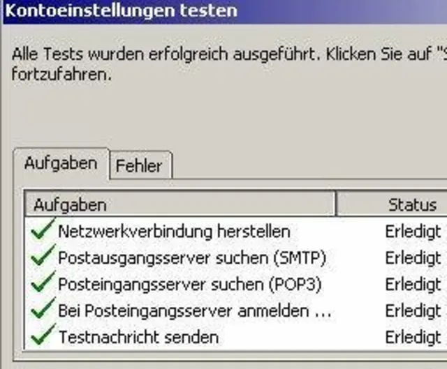Je nach Programmversion, gibt es eine Schaltfläche, um die Einstellungen zu testen. Klicken Sie auf diese Schaltfläche, um eine Testnachricht zu versenden und zu kontrollieren, ob die einzelnen Schritte richtig funktionieren
