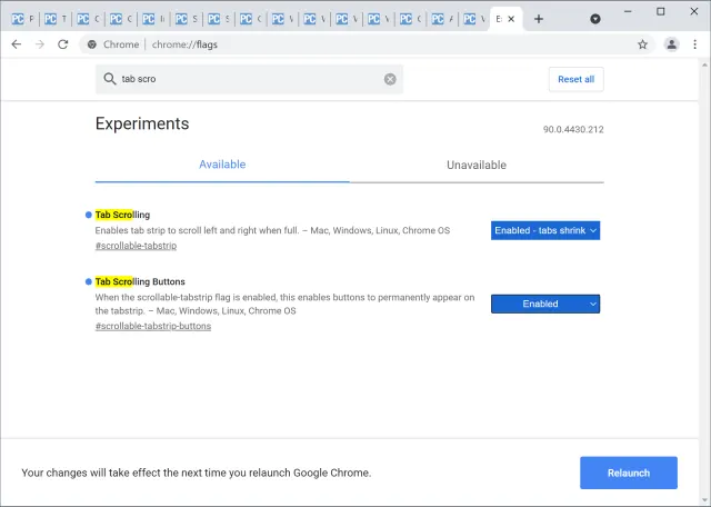 Quelle: PCtipp.chFalls Sie die Einstellung nicht mehr wollen, suchen Sie in den chrome://flags wieder nach Tab Scroll und schalten die beiden Optionen wieder auf Default oder (falls Google sie standardmässig aktiviert) auf Disabled.