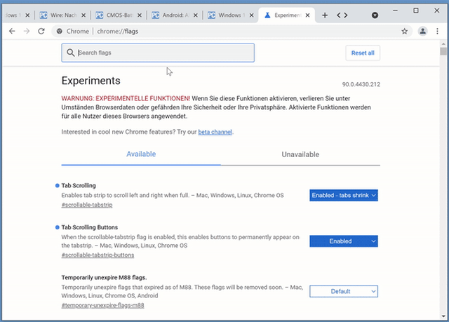 Google Chrome: Versteckte Tab-Scrollfunktion aktivieren