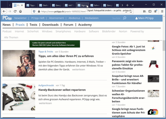 Quelle: PCtipp.chAnders in Google Chrome. Derzeit schrumpfen dessen Tabs einfach immer weiter in der Breite, bis zur Unkenntlichkeit: