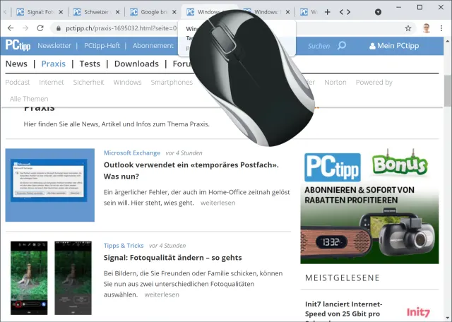 Quelle: PCtipp.chAb dem nächsten Start zeigt auch Chrome die Blätterpfeile an. Ausserdem ist die Tab-Leiste damit ebenfalls per Mausrad scrollfähig:
